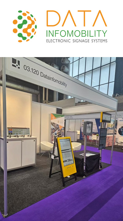 I display presentati alla fiera Intertraffic Amsterdam 2026 sono interamente sviluppati da DataINFOMOBILITY e basati su tecnologia a basso consumo. Si tratta di dispositivi basati su display a tecnologia e-paper (e-Ink display) con uno schermo che può avere diverse dimensioni, nello specifico 13”, 28” e 32” progettati per fornire informazioni chiare e visibili ai passeggeri, anche in condizioni di forte luce solare. Grazie infatti all’innovativa tecnologia e-paper, il display garantisce un elevato contrasto e una leggibilità ottimale senza il consumo energetico elevato tipico degli schermi tradizionali. La tecnologia e-paper consuma infatti energia solo durante il cambio delle informazioni visualizzate, permettendo al display di mantenere un consumo estremamente basso e quindi di funzionare per anni solo con alimentazione a batteria o kit solare. Al fianco della tecnologia e-paper in bianco e nero, DataINFOMOBILITY presenta l’innovativa tecnologia e-paint a colori per uso outdoor in grado di resistere a temperature estreme e di mostrare immagini con buona risoluzione utilizzando poca energia.